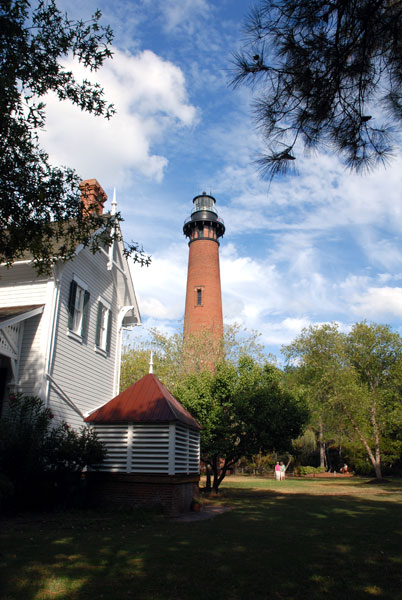 In 1874, the United States Lifesaving Service established the Jones Hill Lifesaving Station (later known as the Currituck Beach Lifesaving Station) just east of the current Currituck Beach Lighthouse site. The station was manned by seven local men, who lived there while their families set up homes in the surrounding village. Establishment of the Currituck Beach Lighthouse in 1875 contributed to several more village residents as light keepers and their families took up residence. The secure government jobs provided by the lighthouse and the lifesaving station encouraged strong and steady growth.